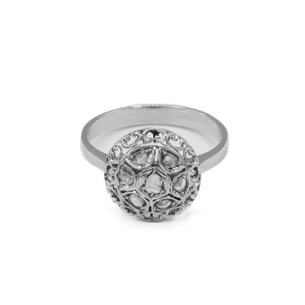 Ring mit 7 Diamantrosen antik in 18 Kt. 750 Weißgold 60 Sammlerstück