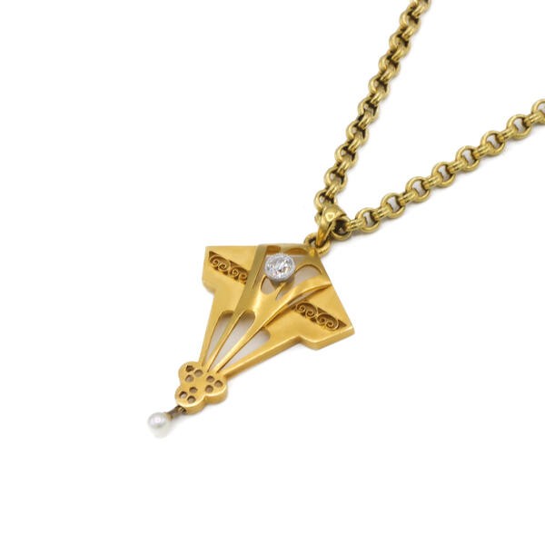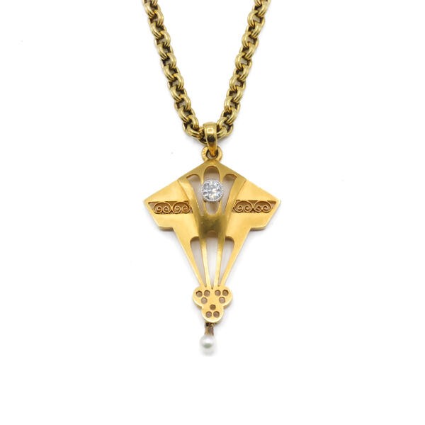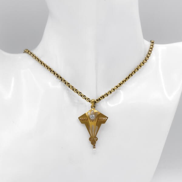 Anhänger mit Altschliffdiamant 0,20 ct und Perle an Erbsenkette 585 Gold 47,5cm