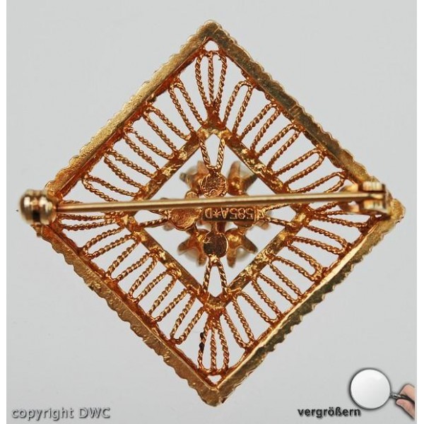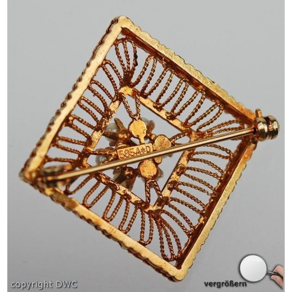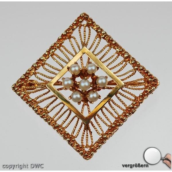 Ansteck Nadel Brosche in 14 kt 585 er Gold mit Perlen Sammlerstück