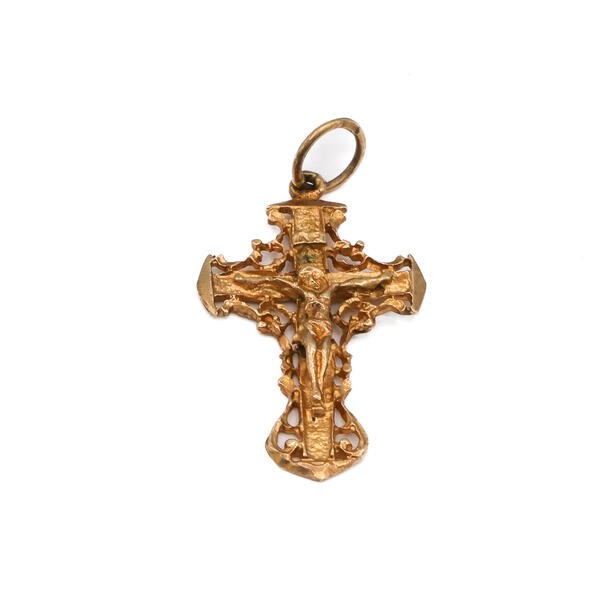 Anhänger Kreuz Kruzifix in 14 kt 585 Rotgold Pendant Antik Glauben
