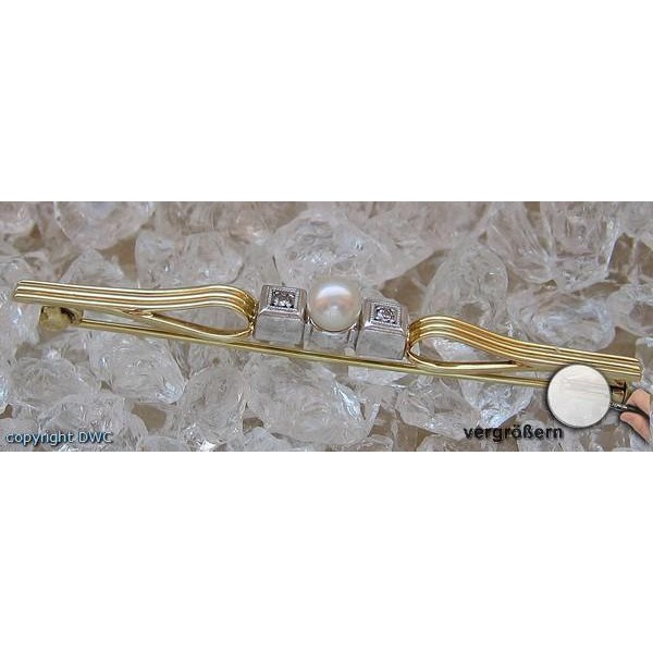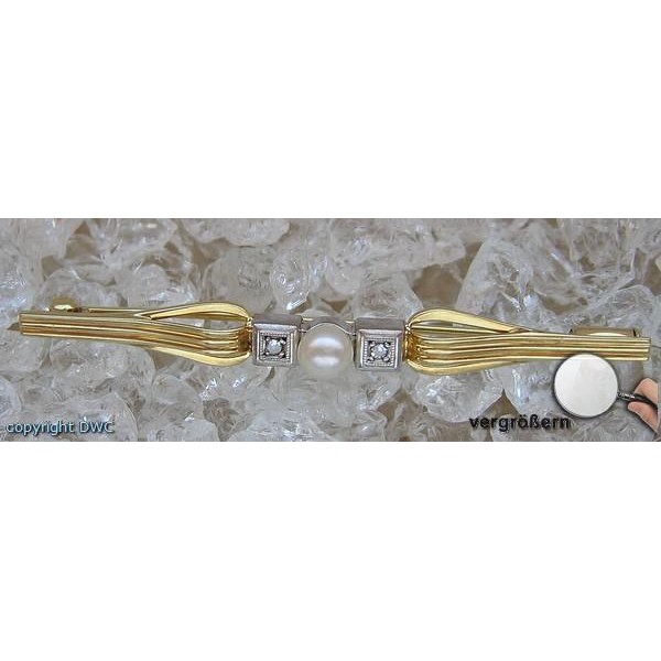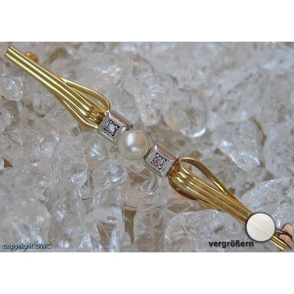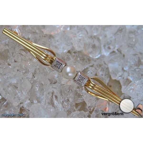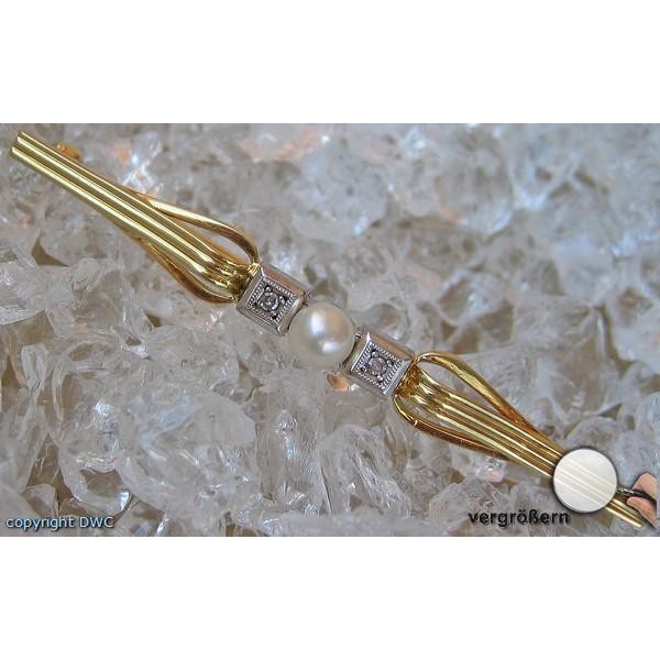 Ansteck Nadel Brosche in 14 Kt 585 Gold mit Perlen Diamanten Sammlerstück