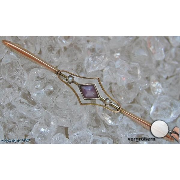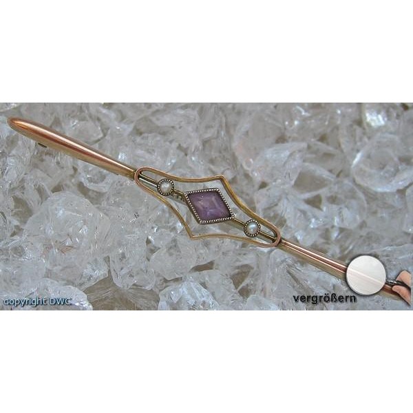 Amethystbrosche Brosche 9 Kt 375 Gold antik Jugendstil Perlen Sammlerstück