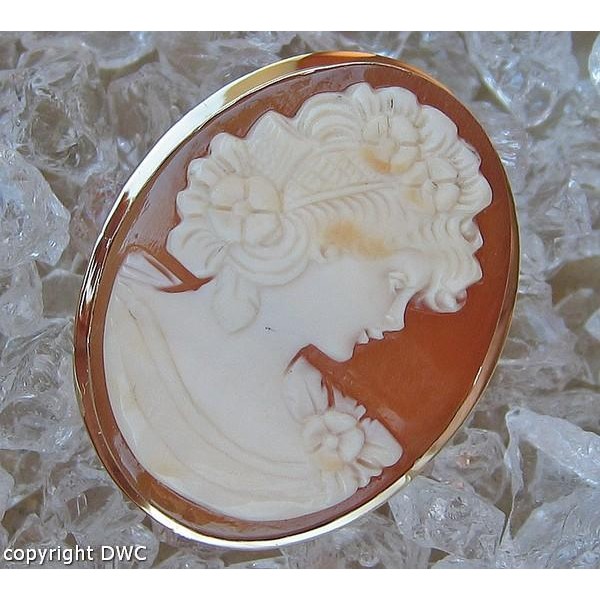 Anhänger Brosche mit Muschelgemme Kamee 18 Kt 750 Gold Dame Gemme