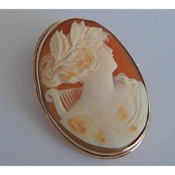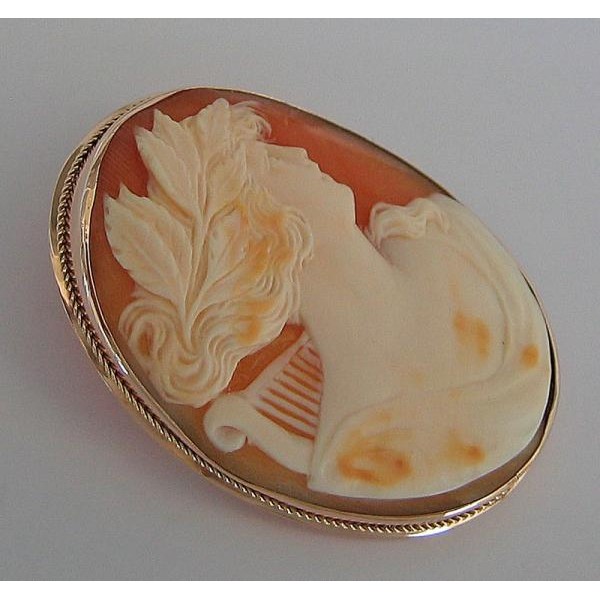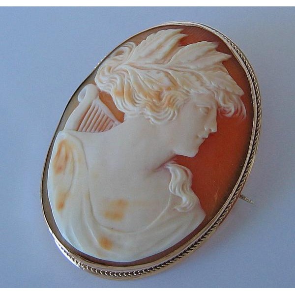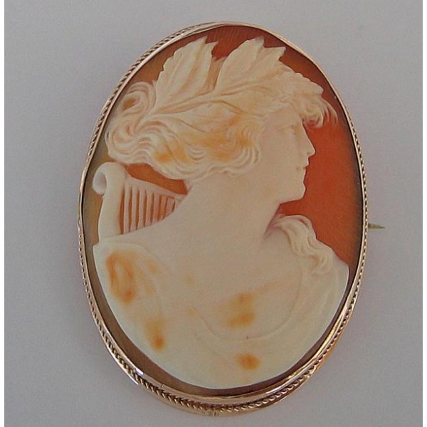 Anhänger Brosche Muschelgemme antik brooch 14Kt. 585 Gold Kamee Tracht