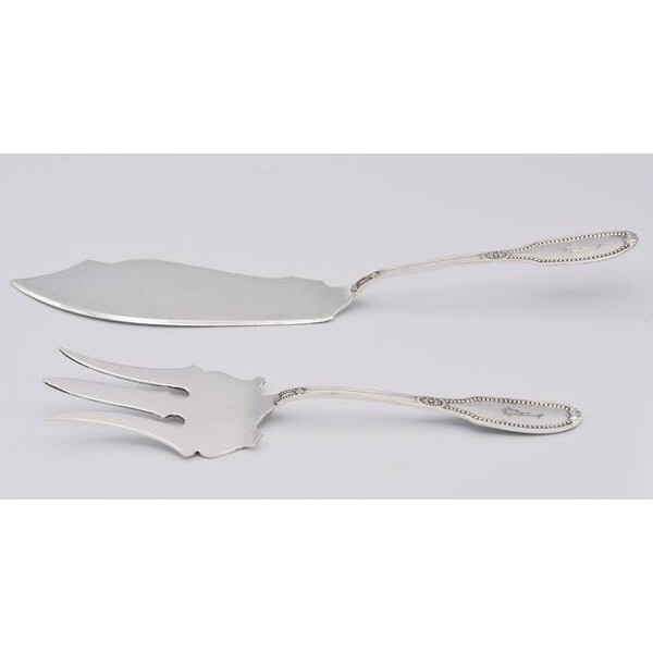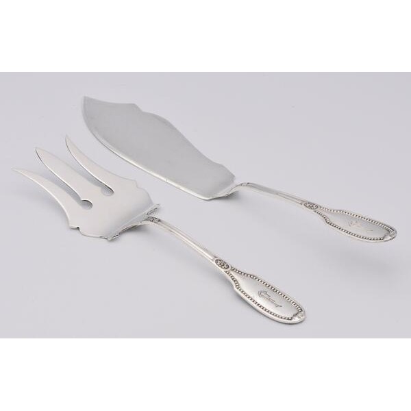 Fisch Vorlegebesteck 2 tlg. 800 Silber antik Perlrand fish cutlery silver