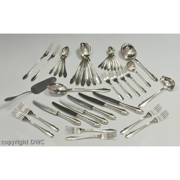 41 tlg. Besteck aus in 800 er Silber Messer Gabel Löffel Vorleger Kelle antik .