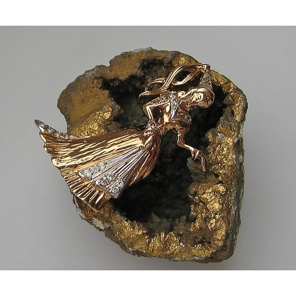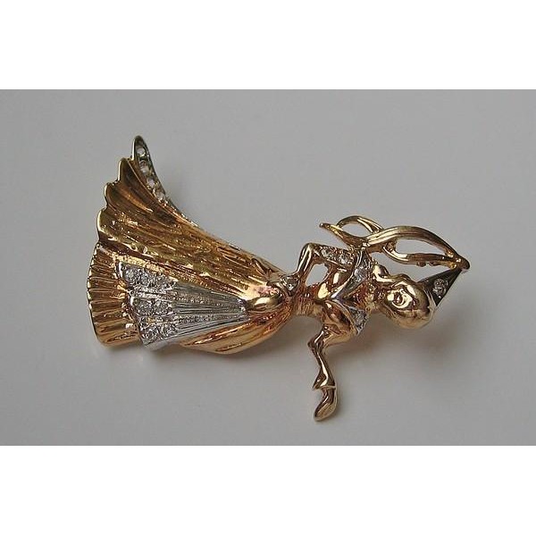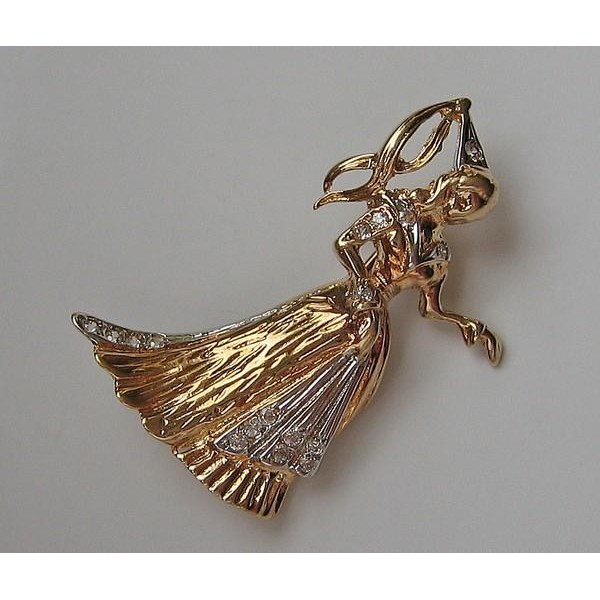 Brosche Dame Fee Prinzessin Tänzerin Nadel aus 14 Kt. 585 er Gold Zirkonia
