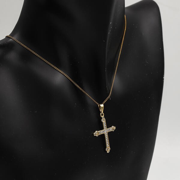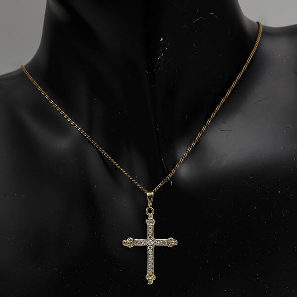 Anhänger Kreuz mit Kristall in 14 Kt 585 Gold Glaube Religion Talisman