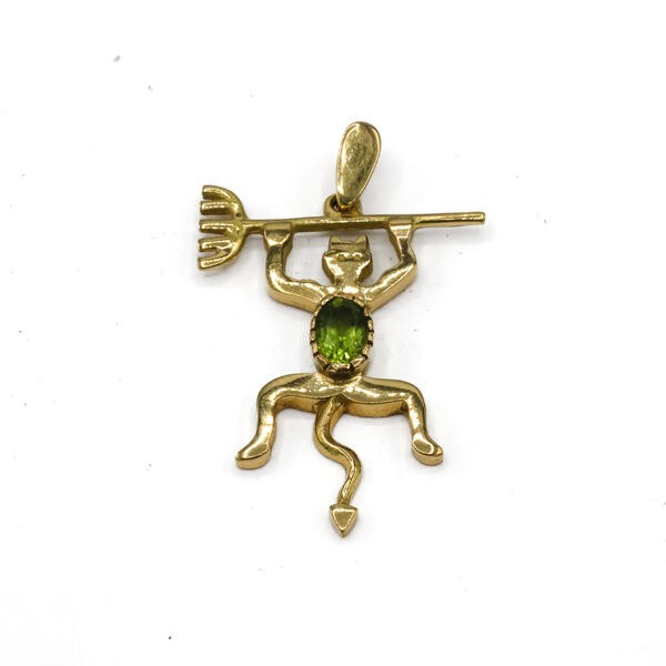 Anhänger Teufel Teufelchen Satan mit Peridot in 18 Kt 750 Gold