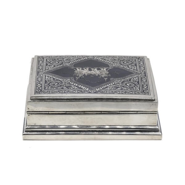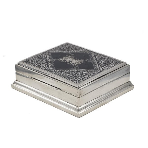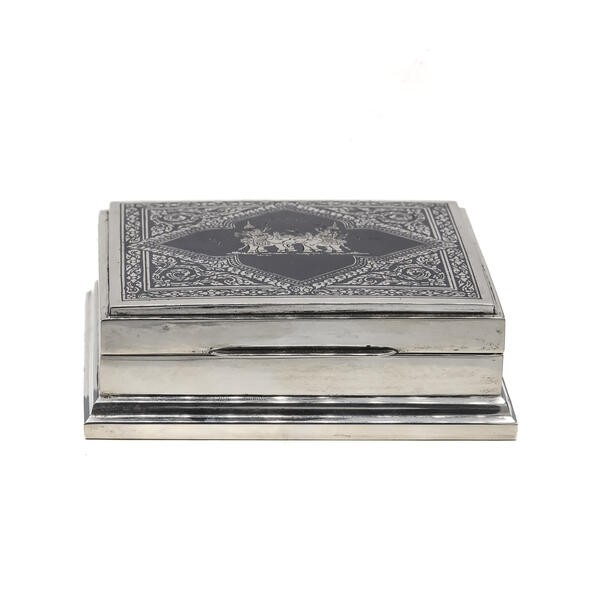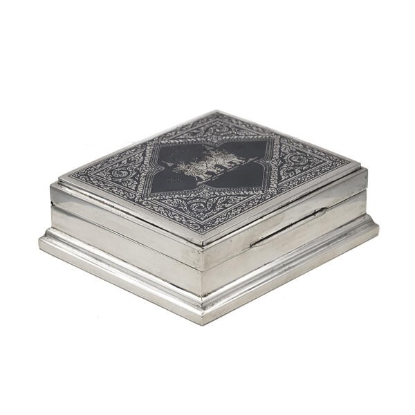 • Bezeichnung: Silberdose Tabakdose in Tula Niello Silber 925 Silverbox mit Holz ausgekleidet; Motiv: 2 Elefanten