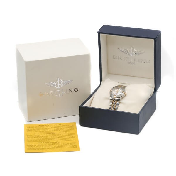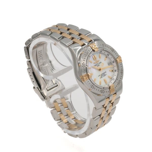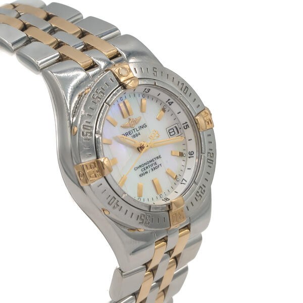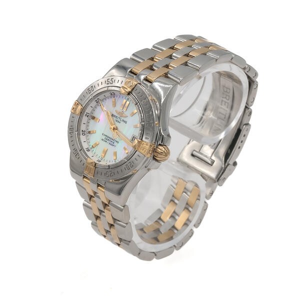 DAU Armbanduhr BREITLING Chronometer B71340 Stahlgold Quarz Perlmuttzifferblatt