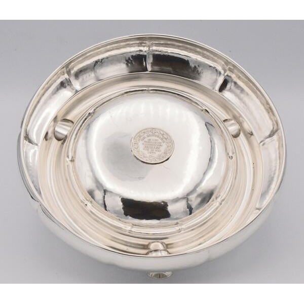 Großer Aschenbecher in massiv Silber 835 mit alter Silbermünze von 1871