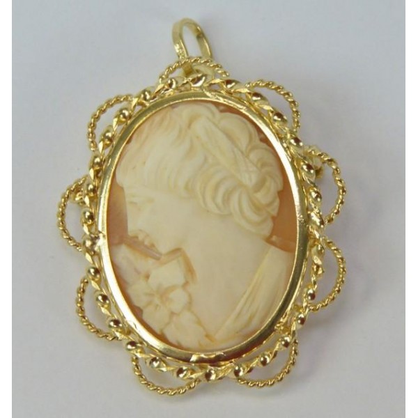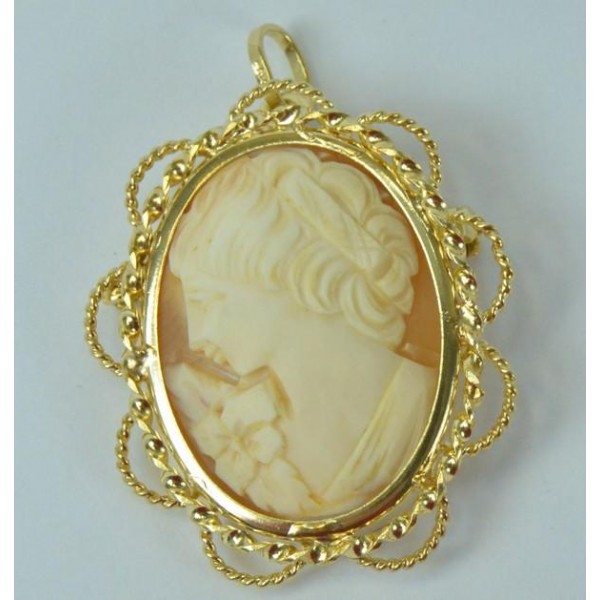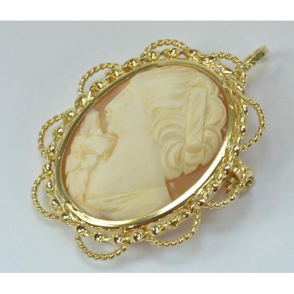 Ansteck Nadel Brosche Anhänger Muschel gemme in 14 Kt. 585 er Gold