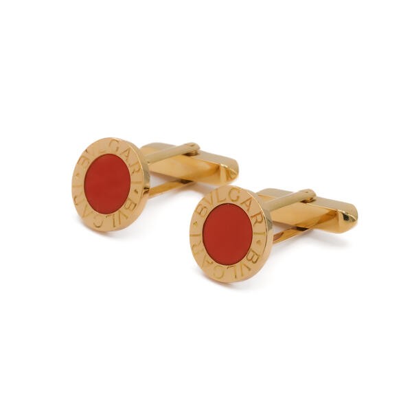 1 Paar BULGARI Manschettenknöpfe mit Koralle in 18 Kt. 750 Gold Coral Cufflinks