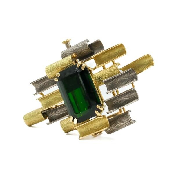 Anhänger Marke Mulin mit Turmalin in 750 18 Kt Weiß Gelb gold Brosche Brooch