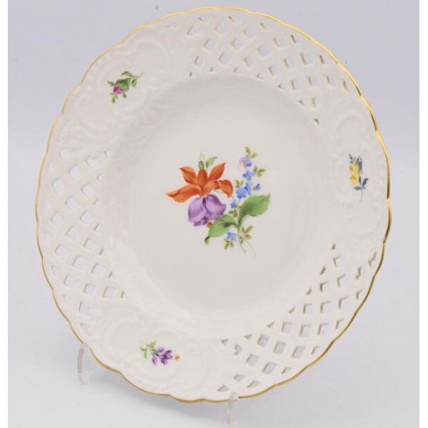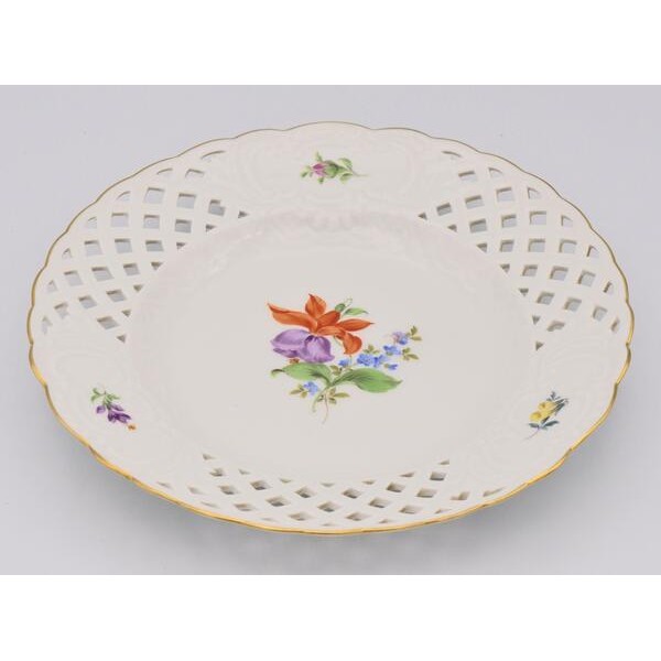 Zierteller Wand Teller original Meissen Porzellan durchbrochen Sammlerstück