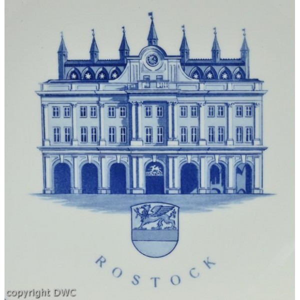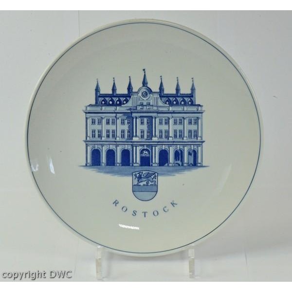 Wandteller Porzellan Teller Meissen zur Ehrung Stadt Rostock Sammlerstück