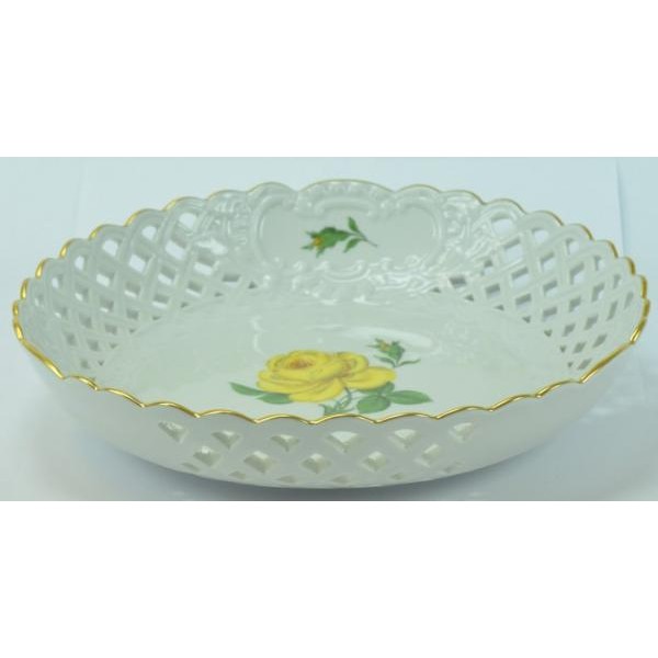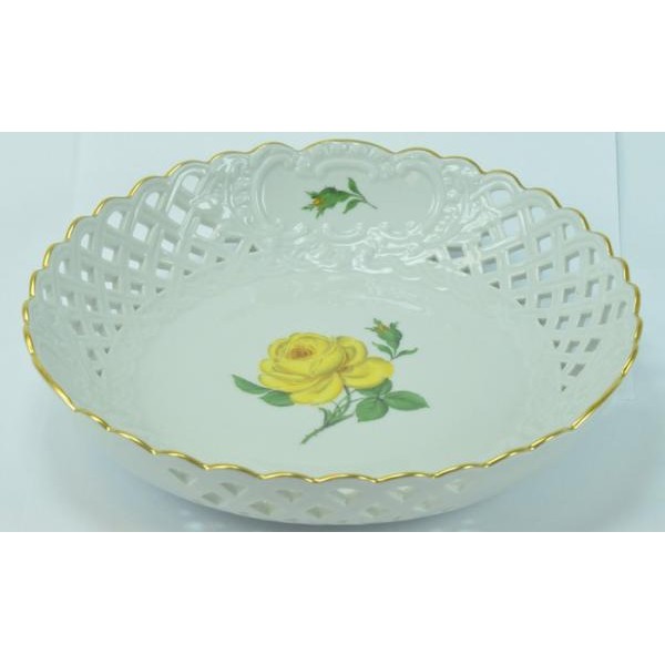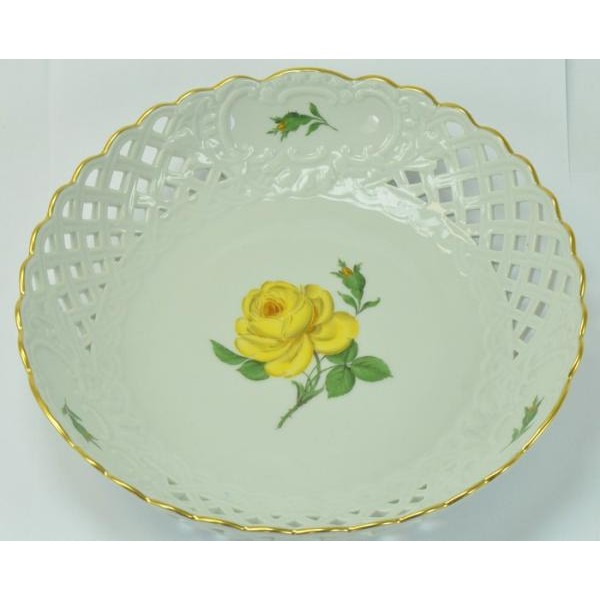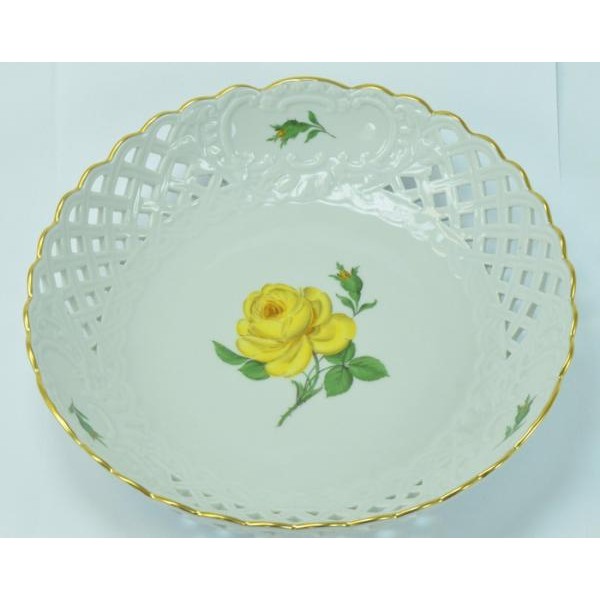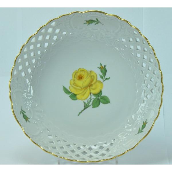 Teller Original Meissen Porzellan Durchbrochen gelbe Rose 22 cm Sammlerstück