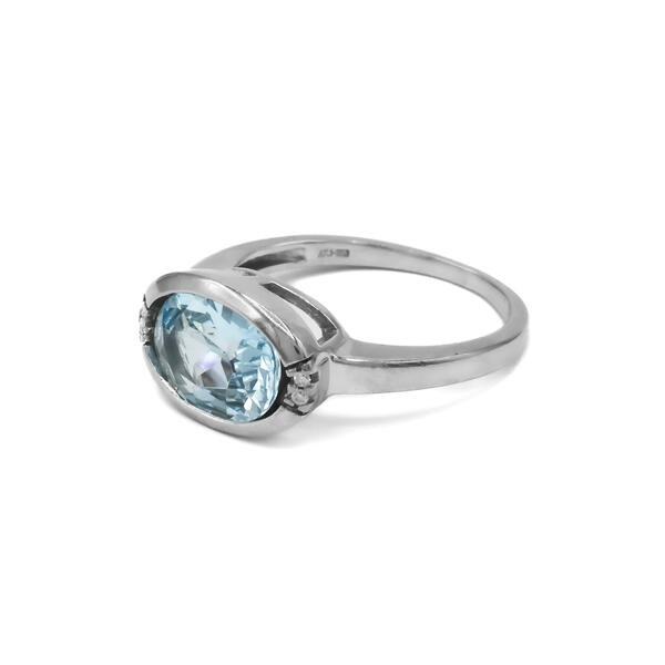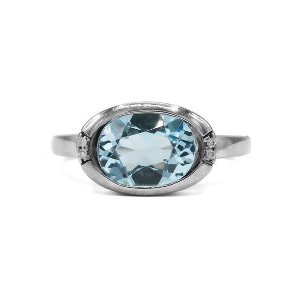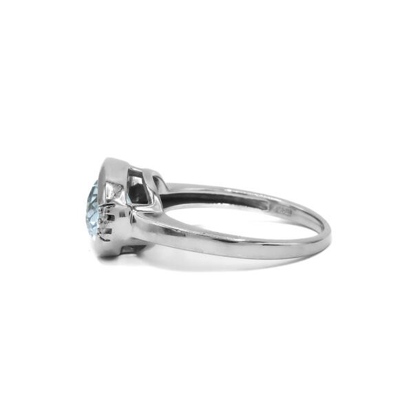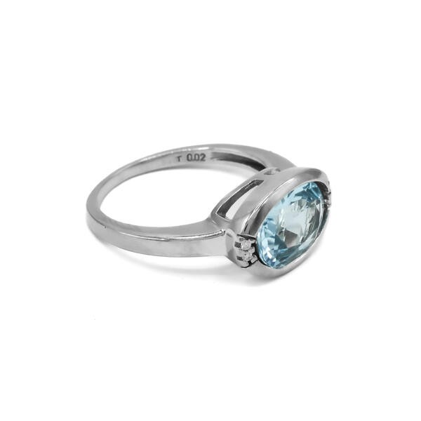 Ring mit Aquamarin 2,0 ct. und 4 Brillanten 0,02 ct. in 18 Kt. 750 WG Gr. 55