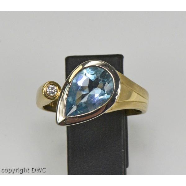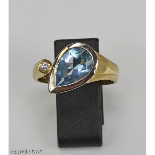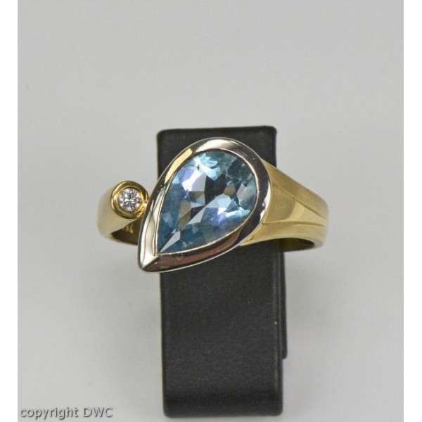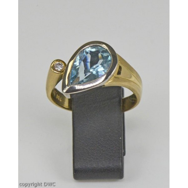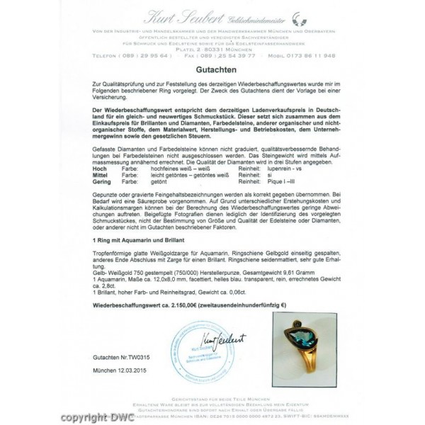 Ring mit Aquamarin Diamant Brillant aus in 18 Kt 750 er Gold 63 Expertise top!