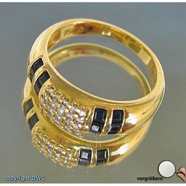 Ring mit Diamant Brillant Saphir Saphire Brillanten Safir in 18 750 er Gold 53