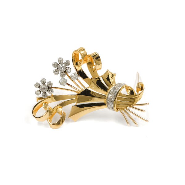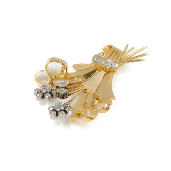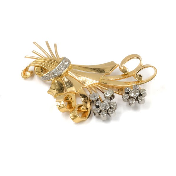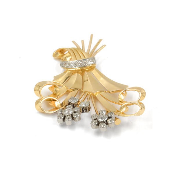 Brosche Nadel Blume Blüten mit Altschliffdiamanten 750 Gold antik Sammlerstück