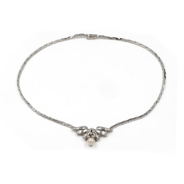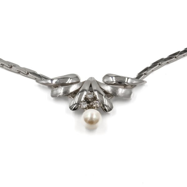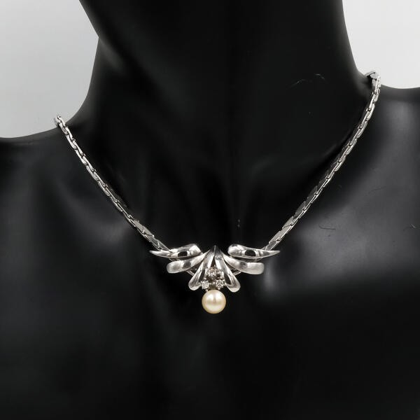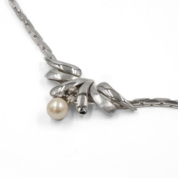 Collier mit Perle und 3 Brillanten Diamanten 0,15 ct in 14 Kt 585 Gold 43 cm