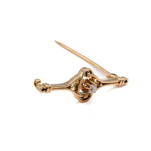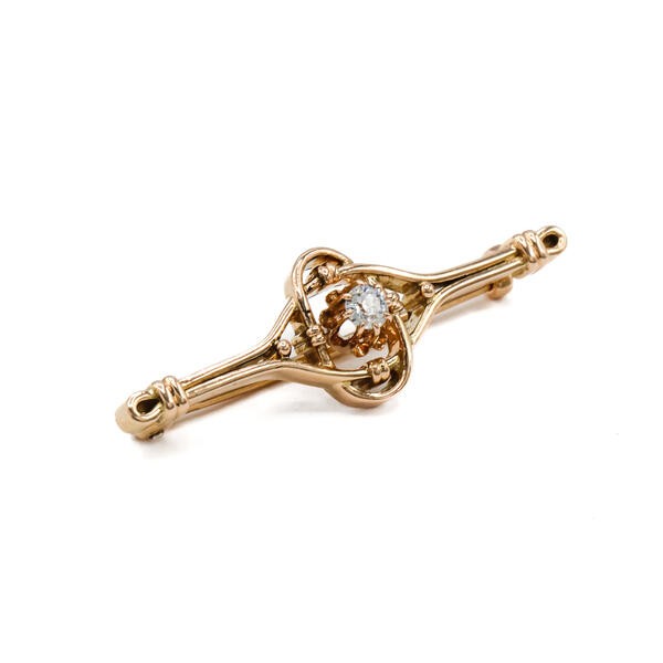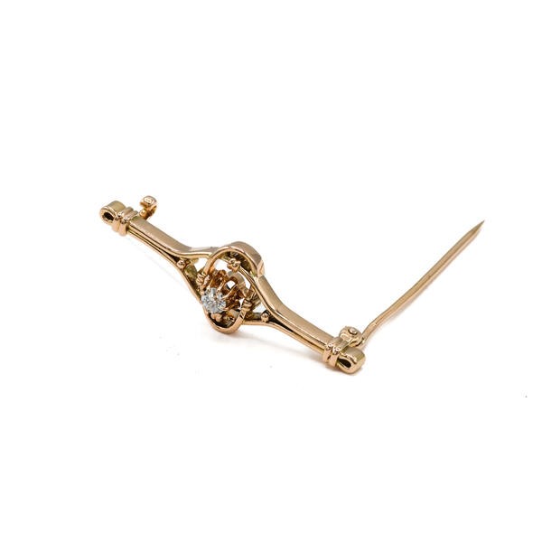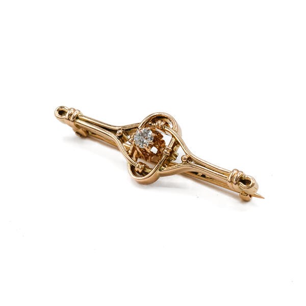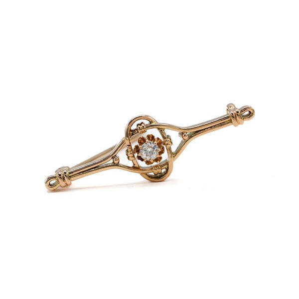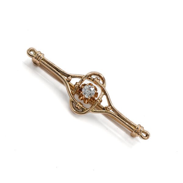 Brosche mit Altschliffdiamant 0,15 ct. in 14 Kt. 585 Rosegold antik Sammlerstück
