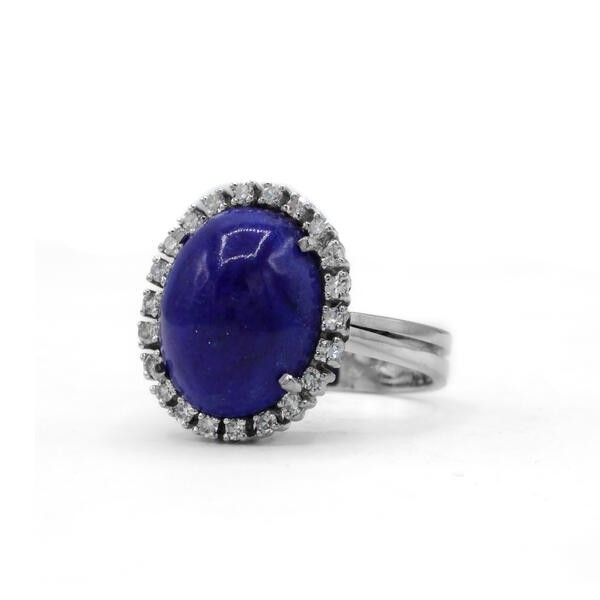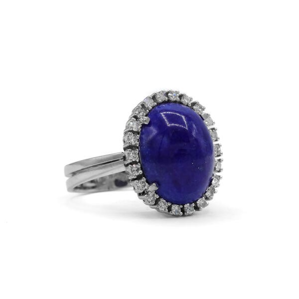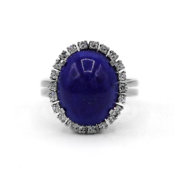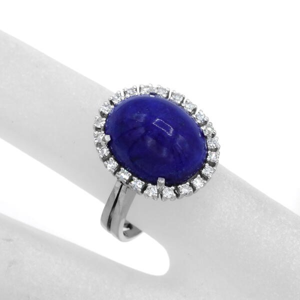 Ring mit Lapislazuli Und Diamanten 0,35 ct in 585 14Kt Weiß Gold Damen 53