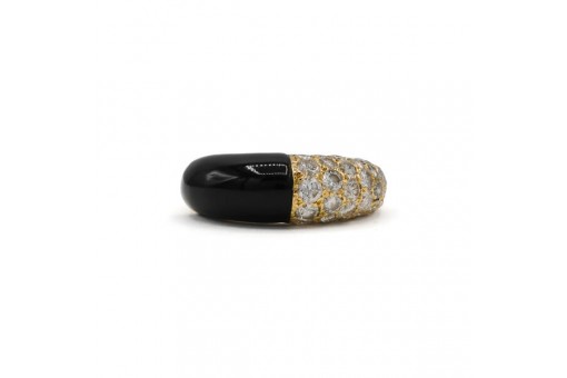 Ring Bandring mit Onyx 34 Brillanten 1,0 ct in 18 Kt 750 Gold Gr. 48
