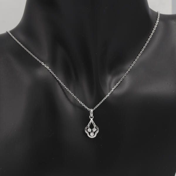 Anhänger mit 3 Diamanten 0,10 ct. an Kette in 8 Kt. 333 Weißgold 45 cm