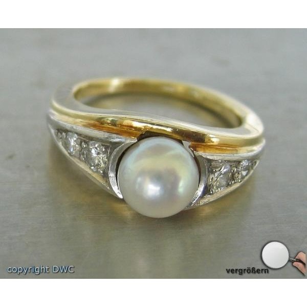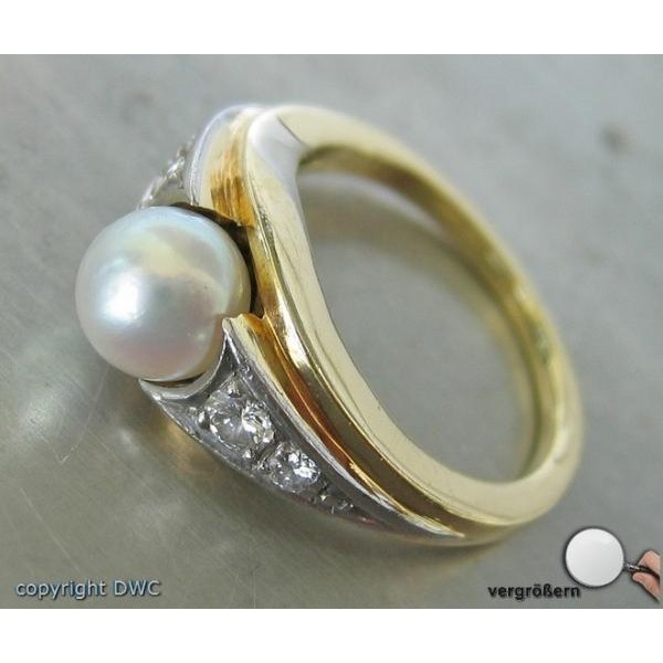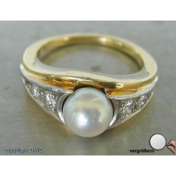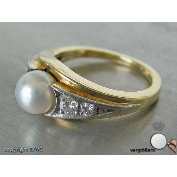 Ring mit Perlen Brillant Diamant Perle in aus 14 Kt. 585 er Gold 54 top!