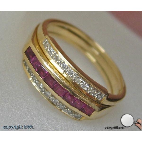 Ring mit Brillanten Brillant Rubin Rubine Rubinen Diamant in 750 er Gold 55