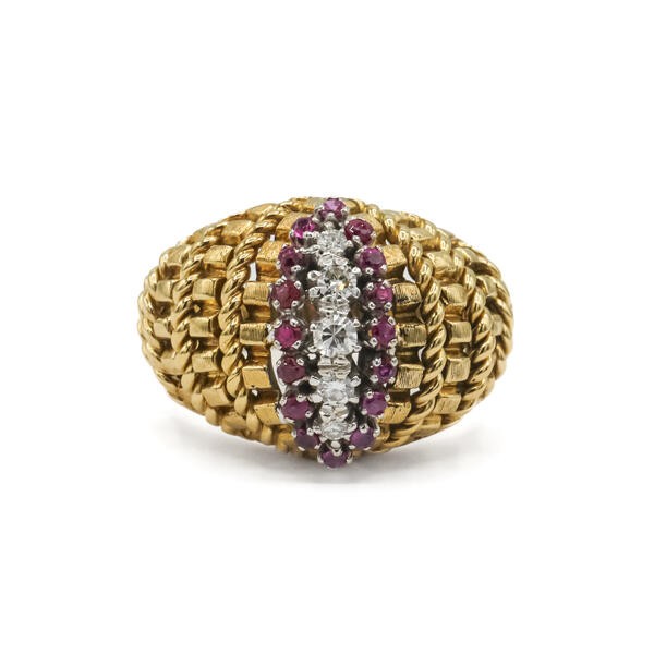 Ring mit Brillanten Diamanten 0,15 ct Rubin in 750 18 kt Gold Gr.56