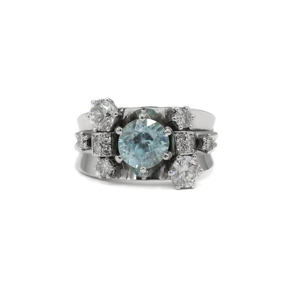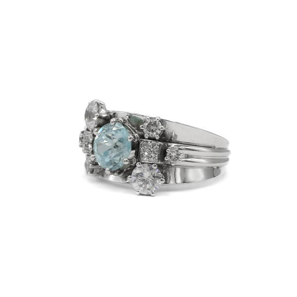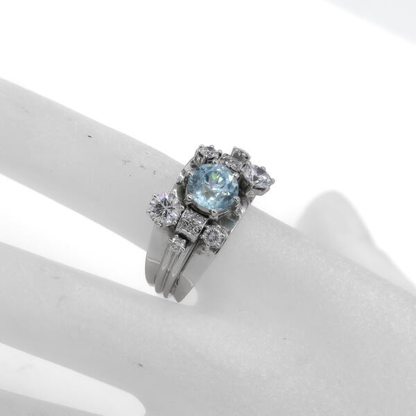 Ring mit Blautopas Brillanten Kristall in 14 Kt. 585 Weißgold Gr. 56