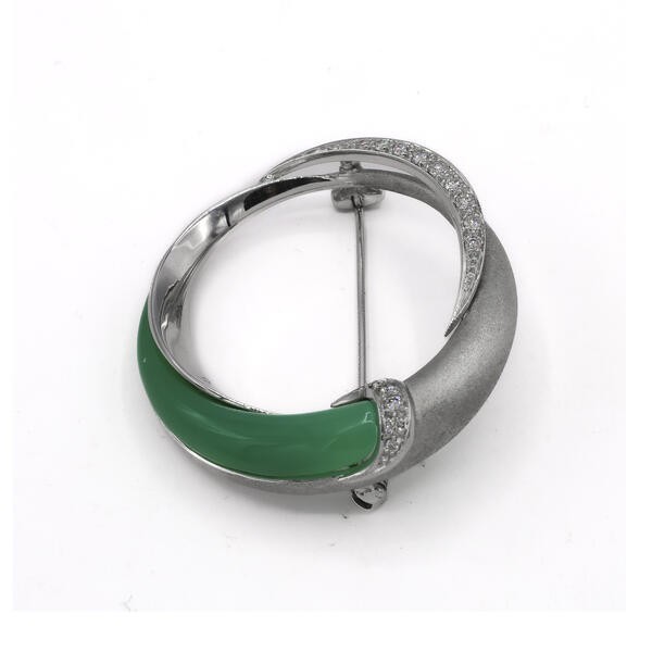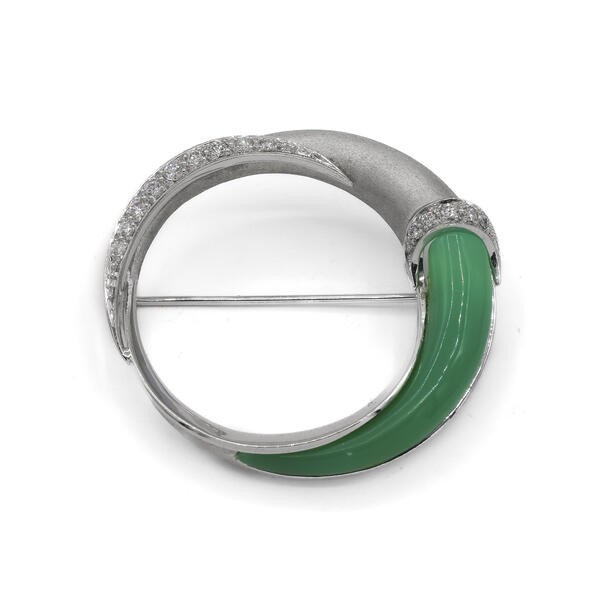 Brosche mit Chrysopras und Brillanten in 18 Kt. 750 Weißgold