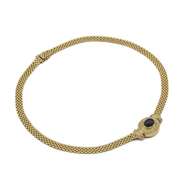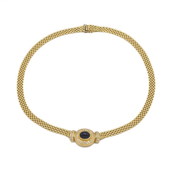 Collier Kette mit Safir und 70 Diamanten Brillanten 0,70 ct. in 18 Kt. 750 Gold