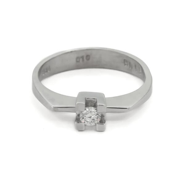 Ring mit Brillant Solitär Diamant 0,10 ct. in 14 Kt. 585 Weißgold Gr. 49