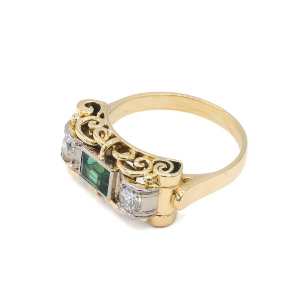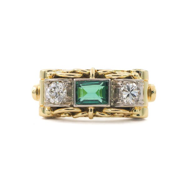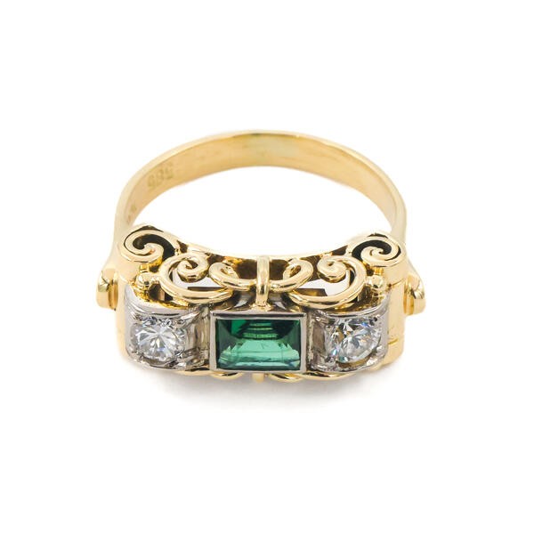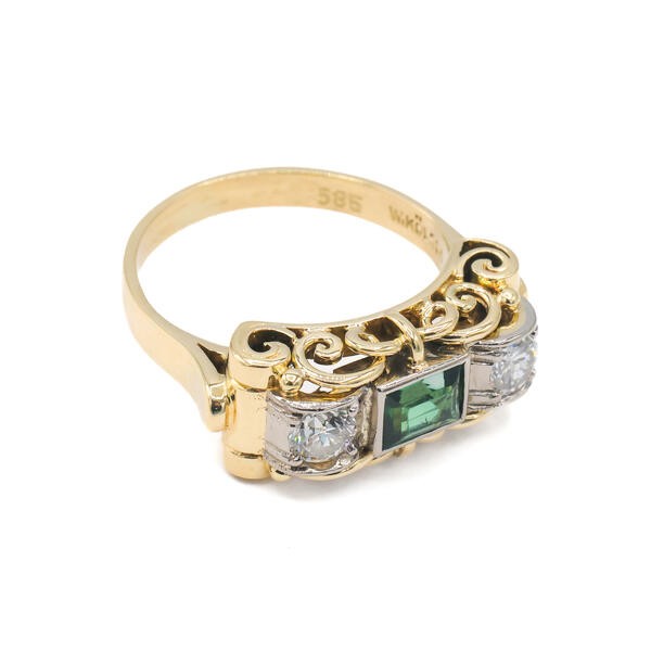 Ring mit Turmalin und 2 Brillanten in 14 Kt. 585 Gelbgold Gr. 52 Sammlerstück