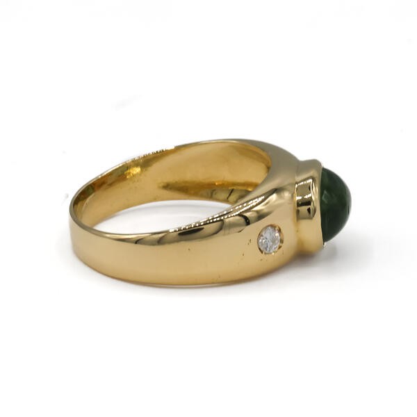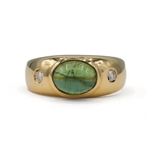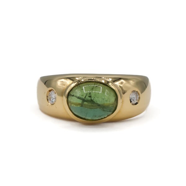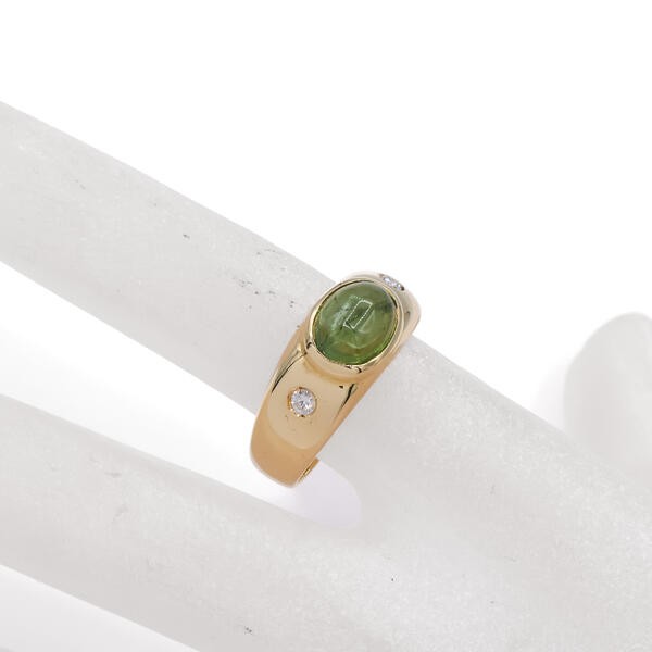 Ring Bandring mit Peridot und 2 Brillanten 0,10 ct. in 18 Kt. 750 Gelbgold Gr.57