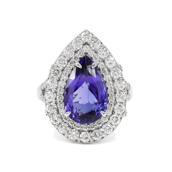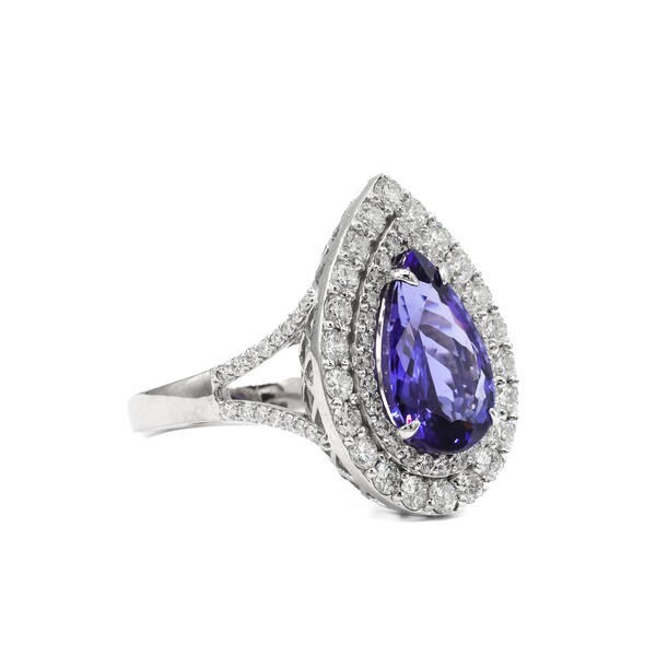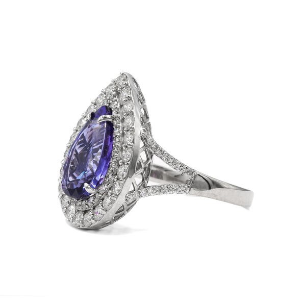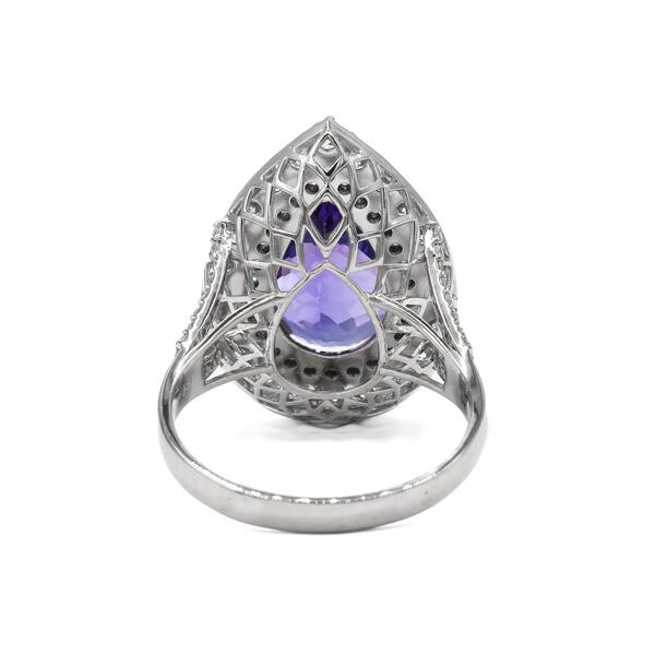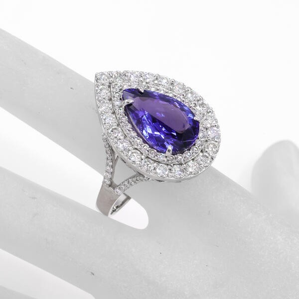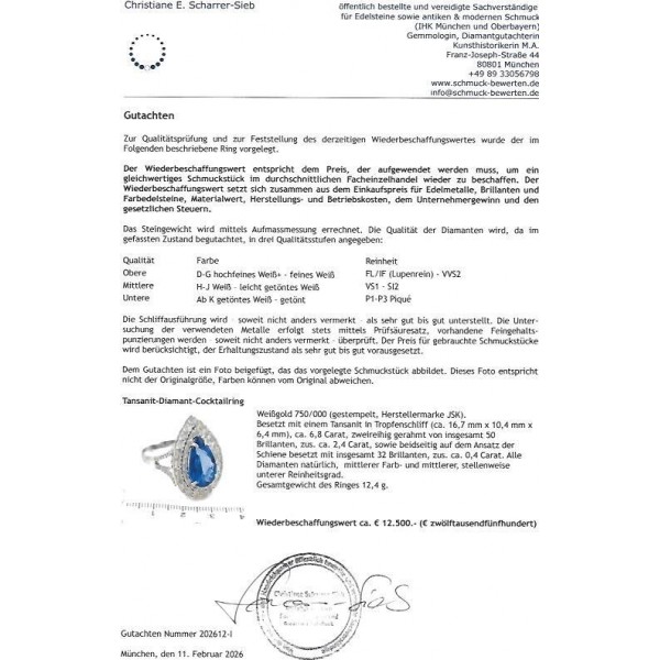 Ring mit Tansanit und Brillanten in 18 Kt. 750 Weißgold IHK Expertise Gr. 71