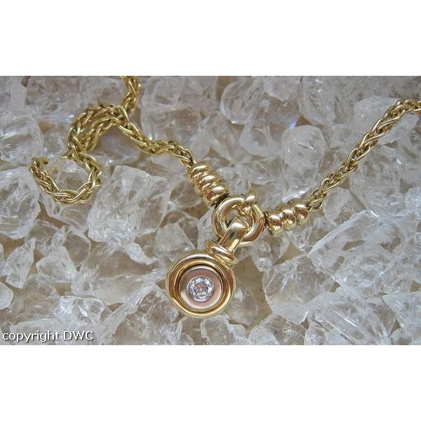Collier Hals Kette mit Brillant Solitär Diamant 14 Kt  585 Gold 42 cm