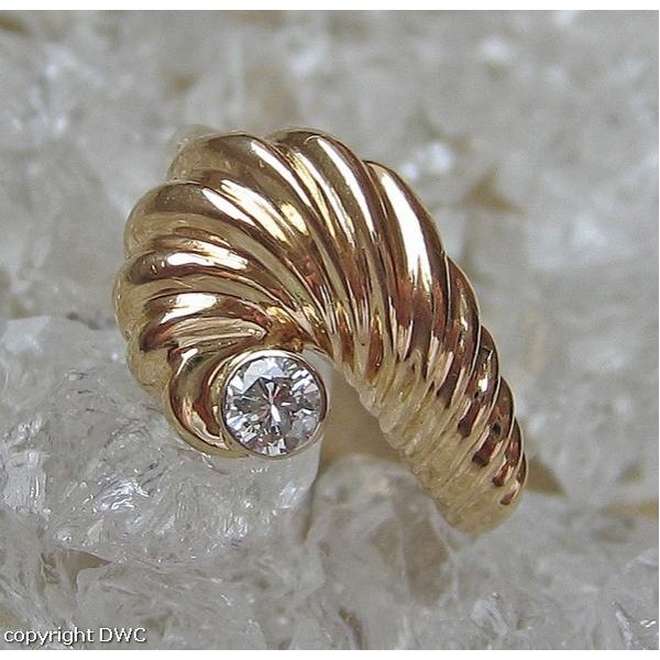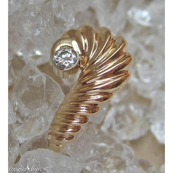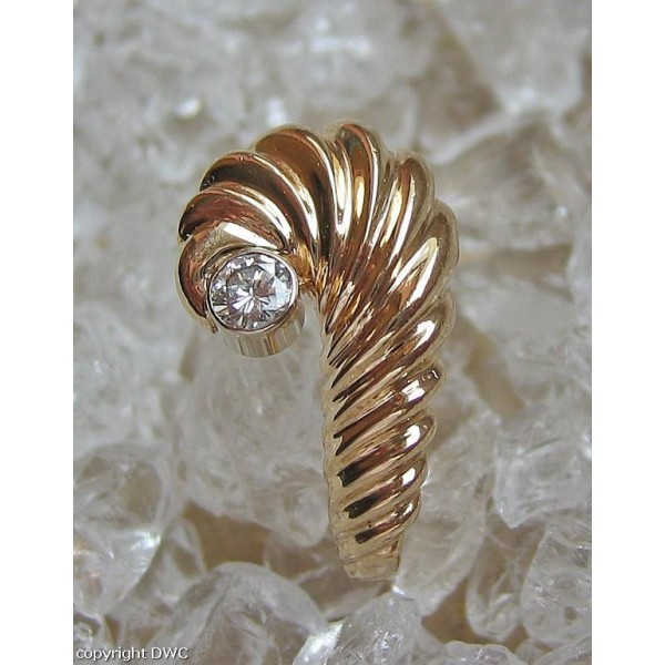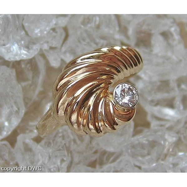 Ring mit Brillant Solitär Diamant in aus Muschel Design 14 Kt 585 er Gold 58