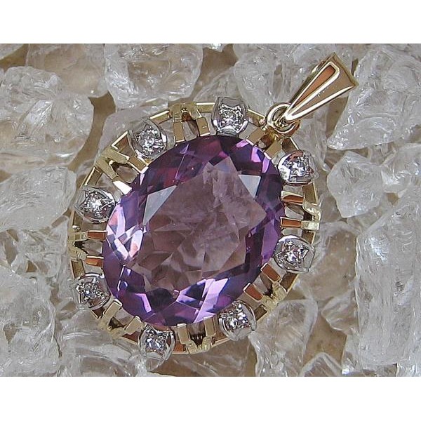 Anhänger mit Amethyst Diamanten Brillanten 14 Kt. 585 er Gold Edles!