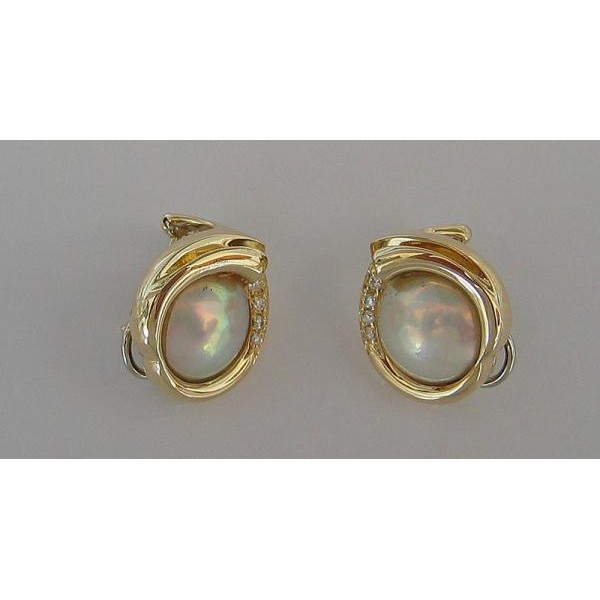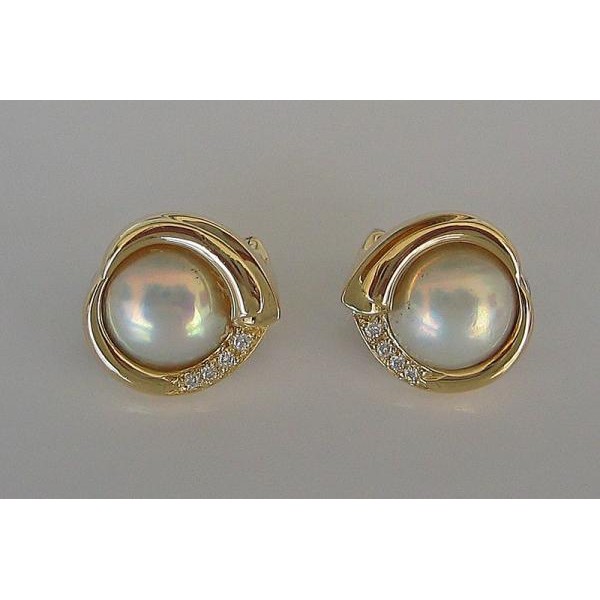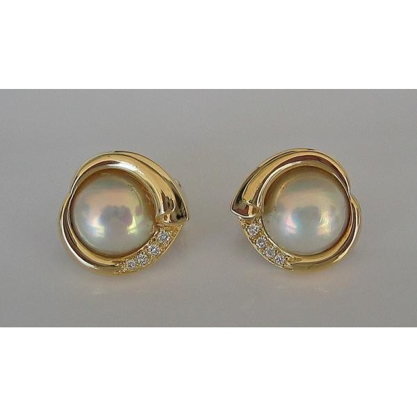 Ohrclips mit Stecker 14 Kt. 585 Gold Mabeperle Perle Brillanten Diamant .