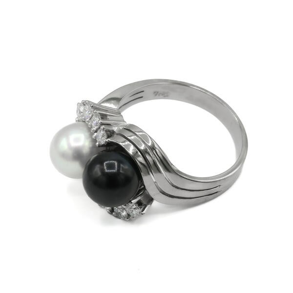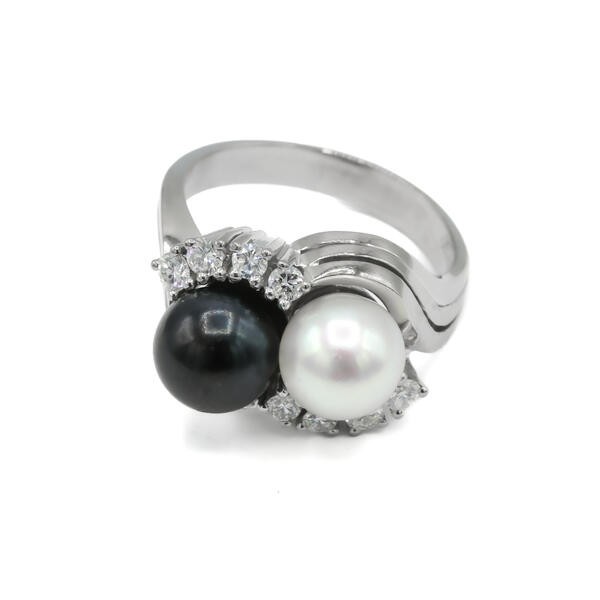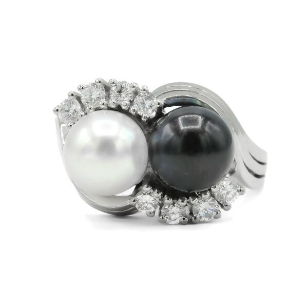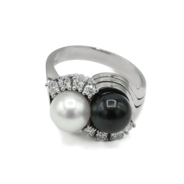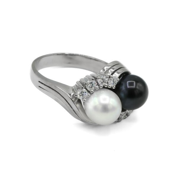 Ring mit Perlen Diamanten Brillanten in aus 18 Kt 750 er Weiß Gold 57 Ringe