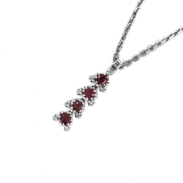 Kette Collier 40 cm und Anhänger mit 4 Rubine und 8 Diamamten in 14 Kt 585 Gold