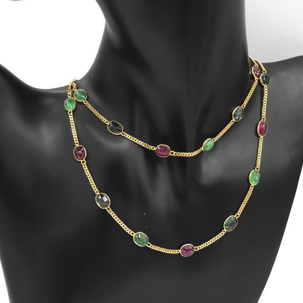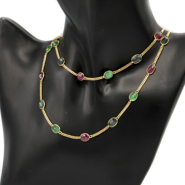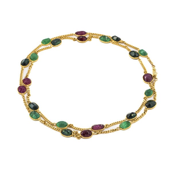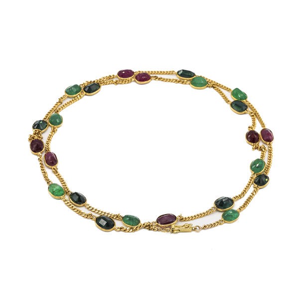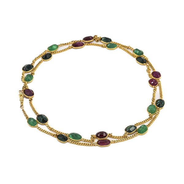 Kette mit Rubinen, Turmalinen und Smaragden in 18 Kt. 750 Gold 66 cm