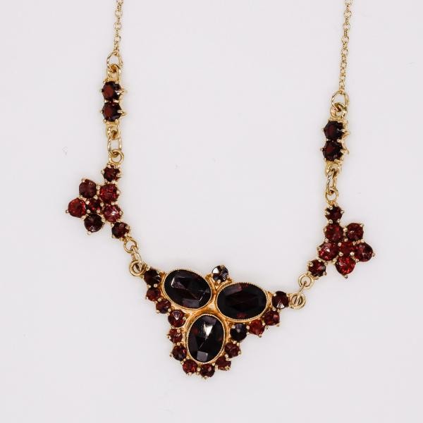 Collier Hals Kette mit Granate garnet in aus 8 Kt. 333 Gold Damen Tracht 45 cm