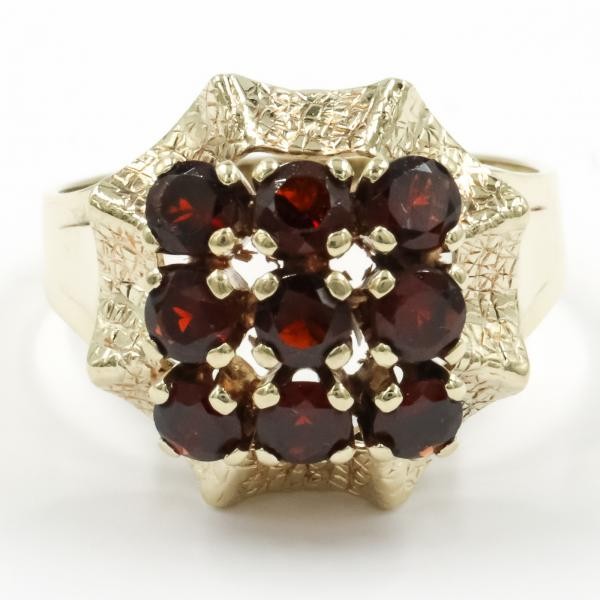 Ring mit 9 Granate Tracht in 14 Kt. 585 er Gold Grösse 56 Granat top